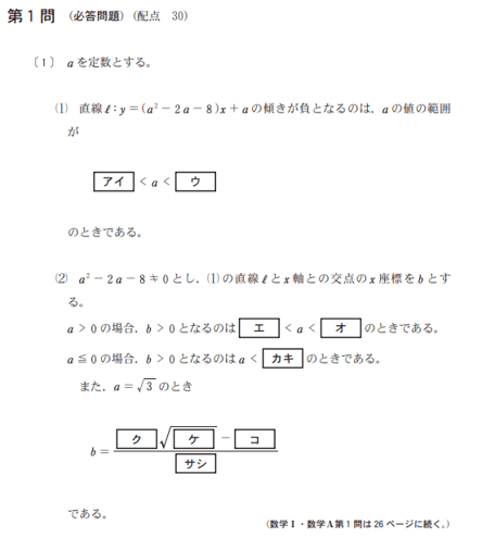 言葉の意味をきちんと押さえるといっても苦手意識を持つ人はピンと来ないかもしれません。そこで、苦手意識を持つ人が少なくない数学を例に出して説明していきます(2020年度・センター試験、数学ⅠAから引用)。
